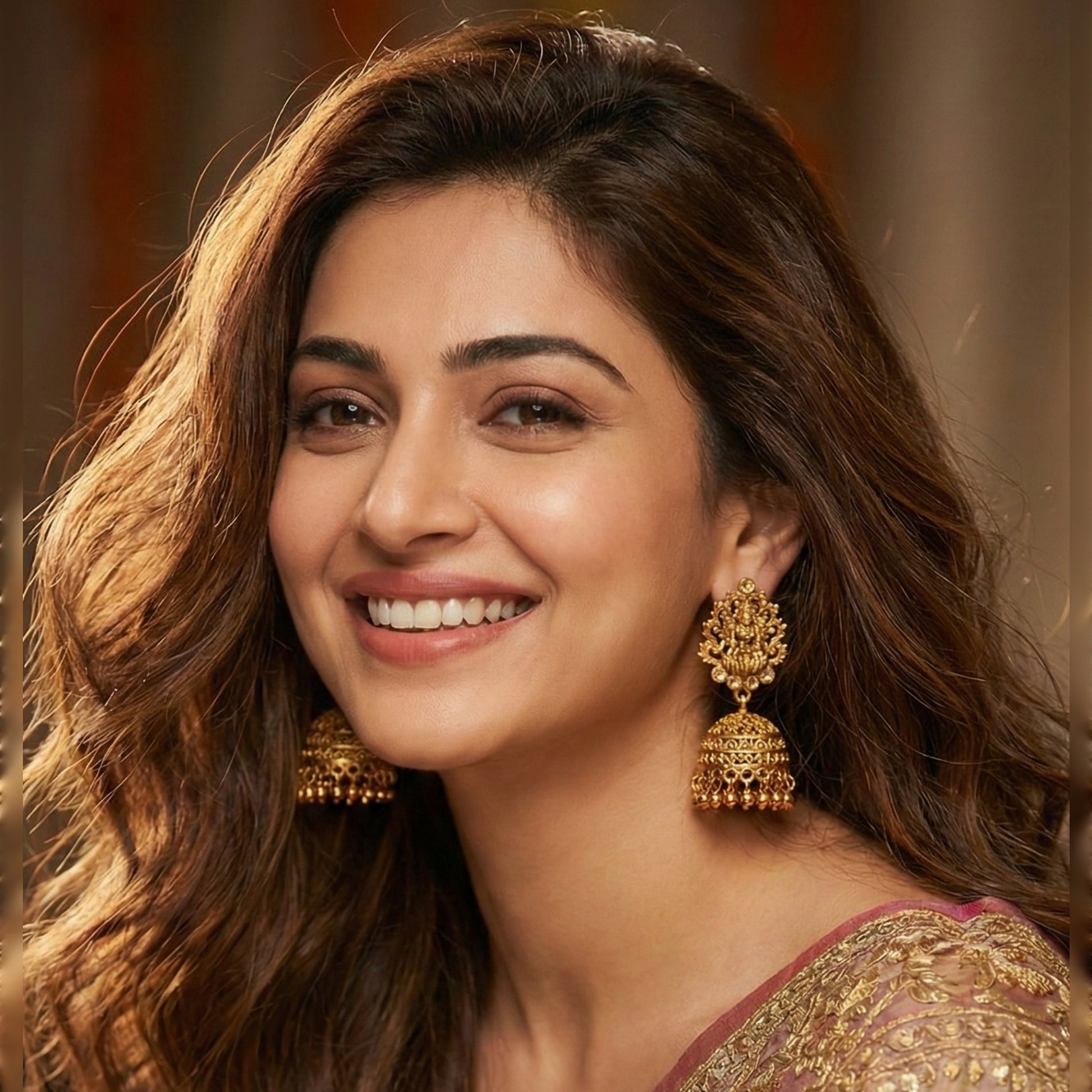 Golden intricate Temple Jhumkis