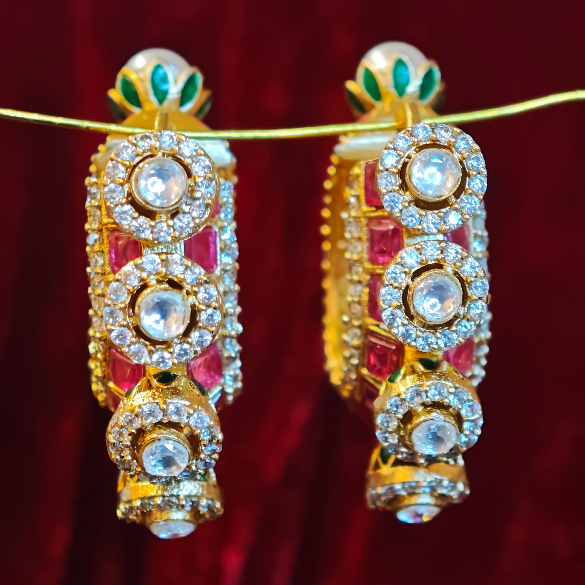 Elevate your style with the Elegant Pearl Stone Studded Hoop featuring exquisite craftsmanship and a bold, elegant design.