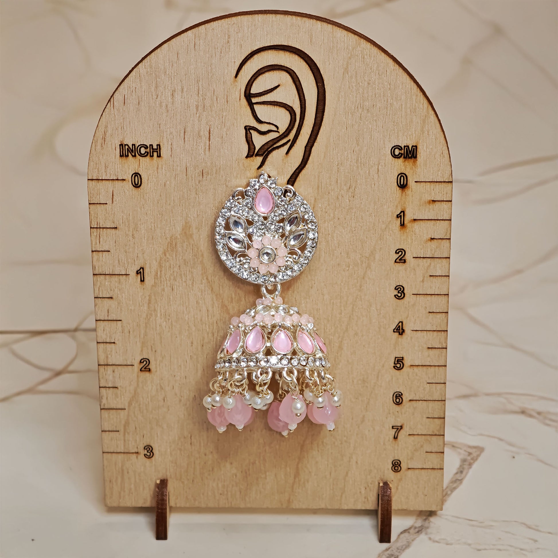 Baby Pink Silver Kundan Styled Stone Jhumki