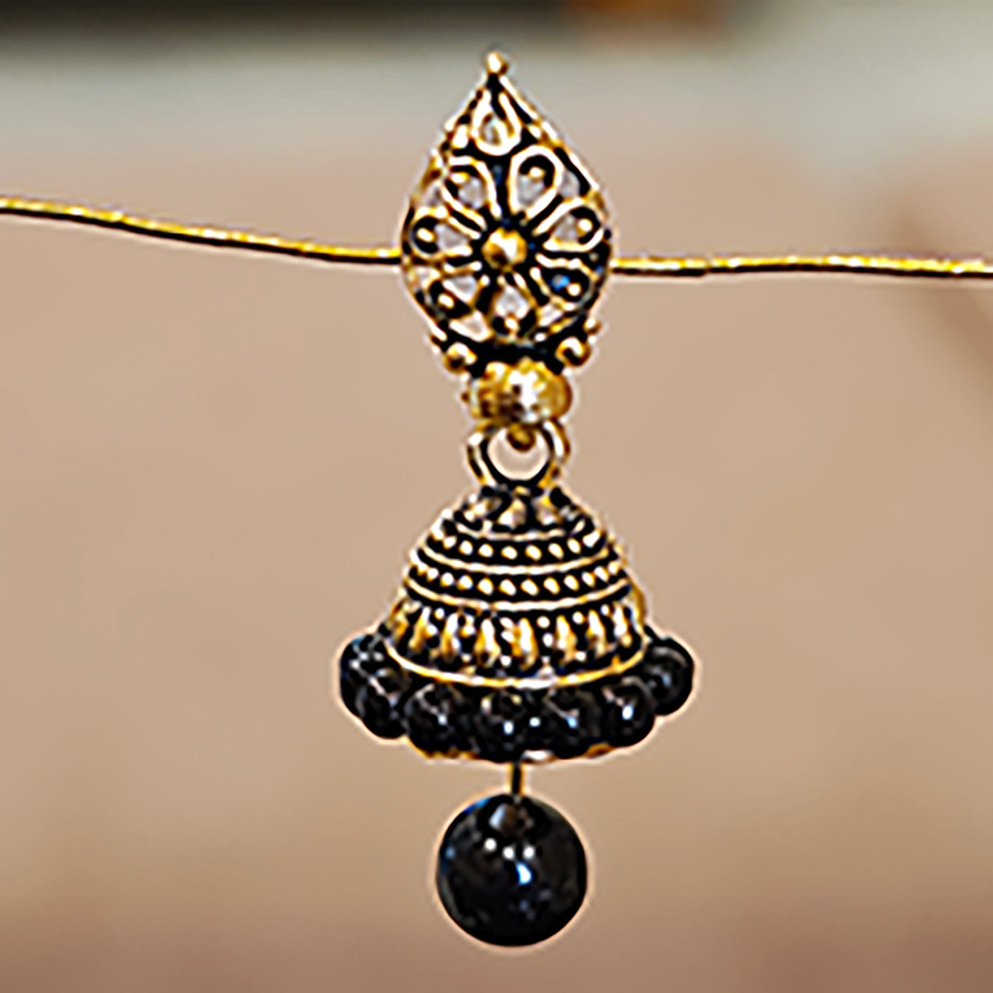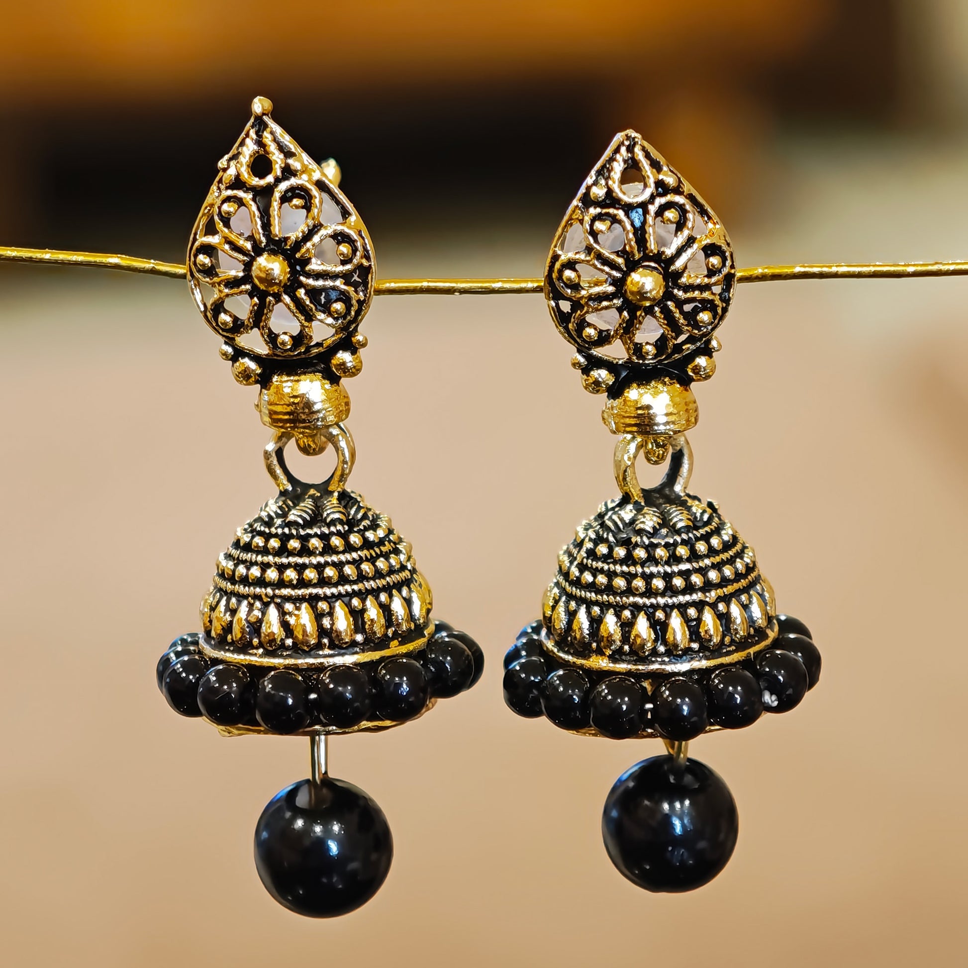 Elegant traditional earrings featuring intricate openwork leaf designs in vibrant blue, combining botanical inspiration with delicate jaali craftsmanship for distinctive ethnic styling.