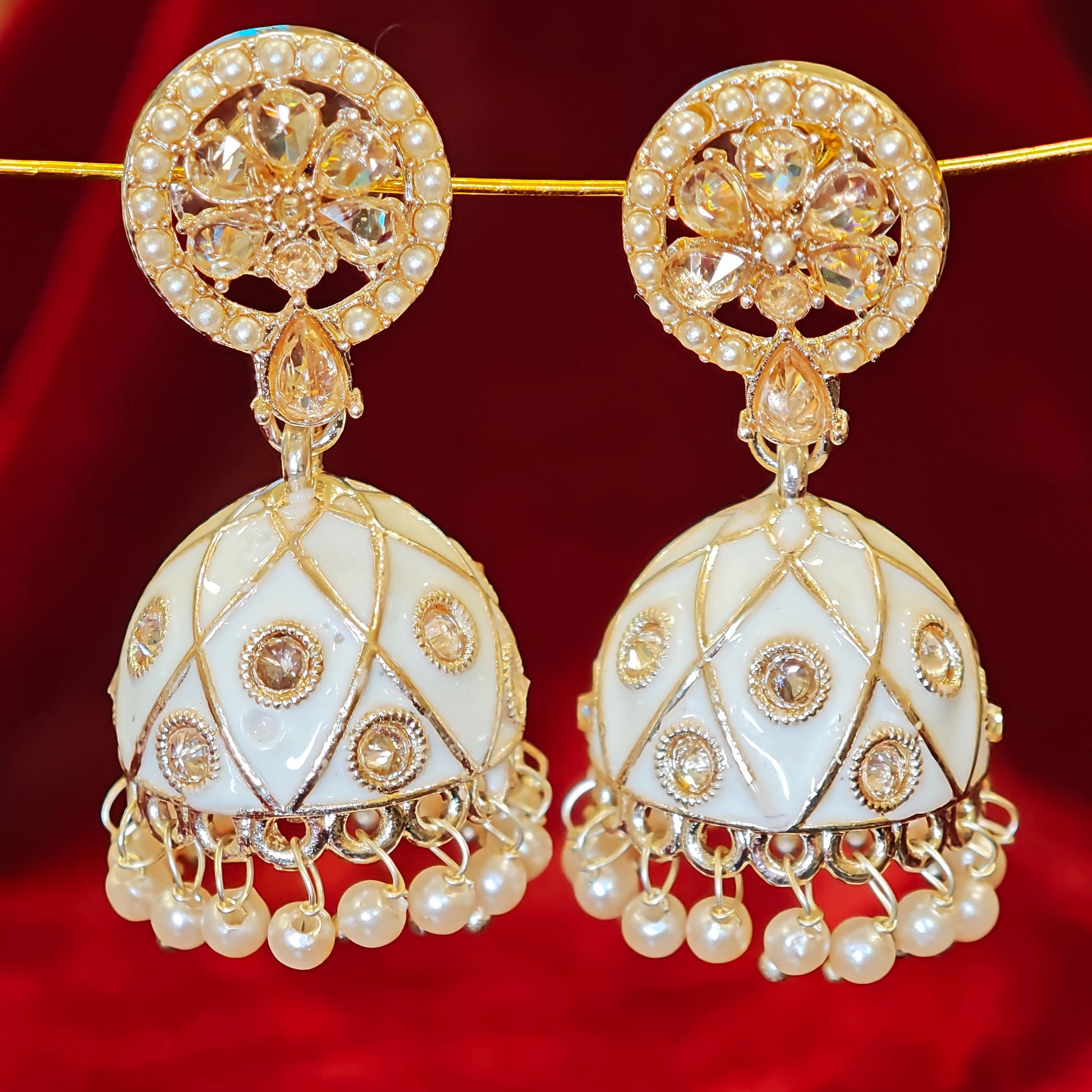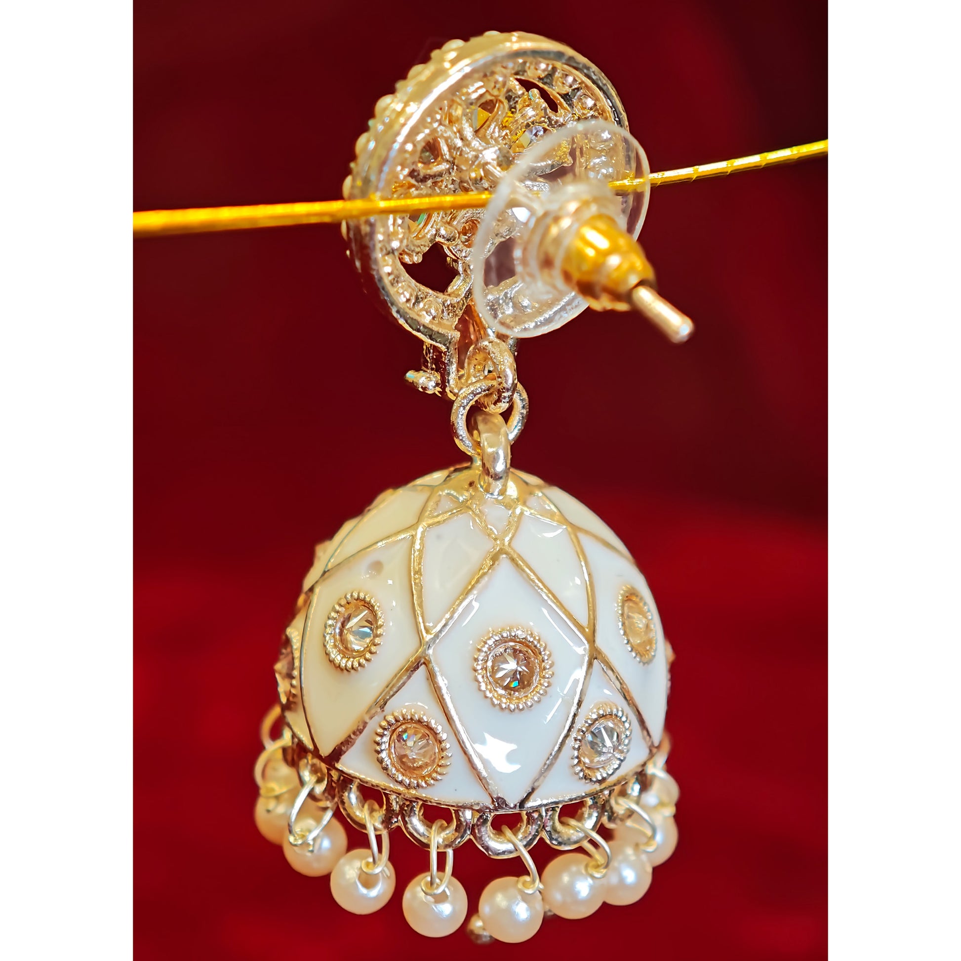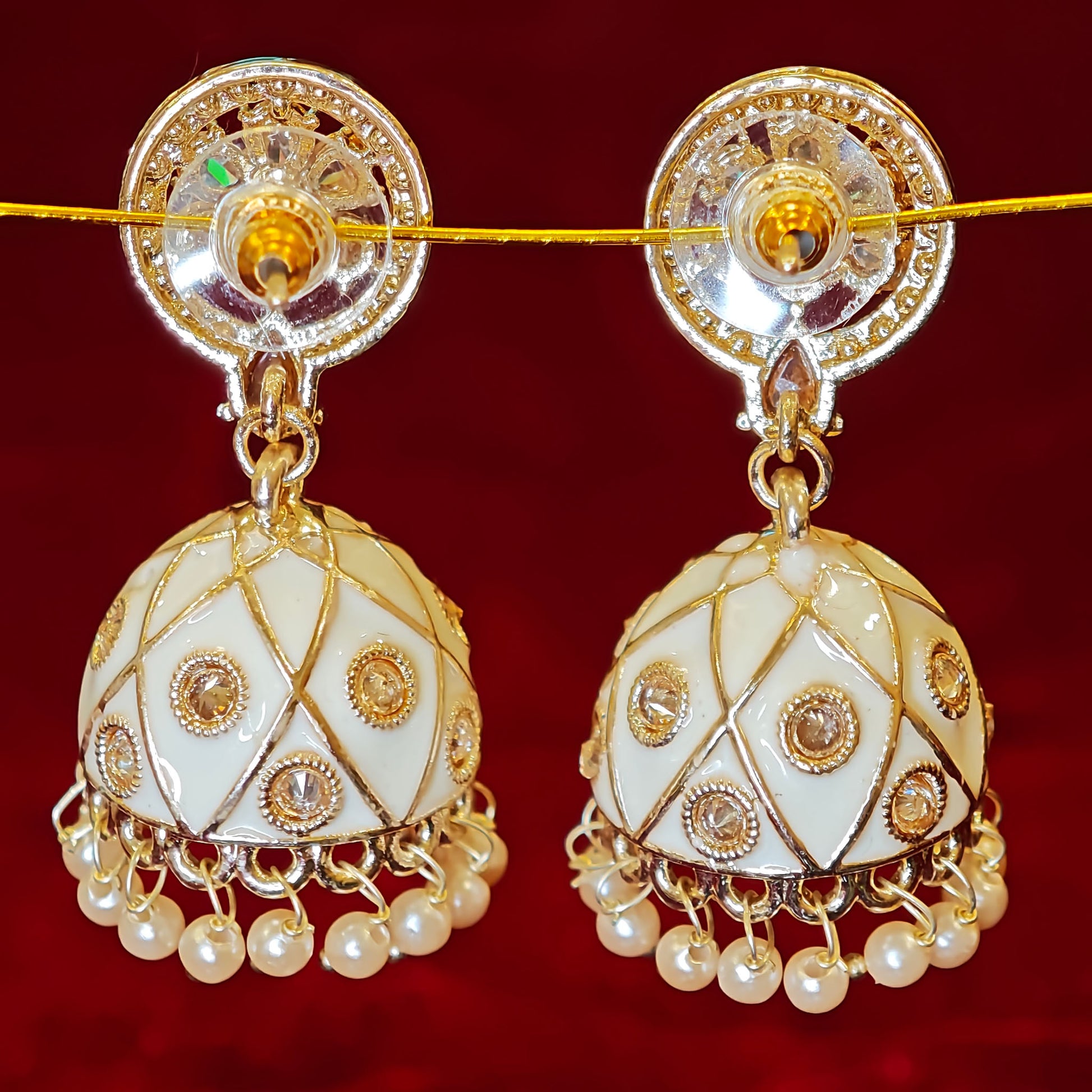 White Meenakari Jhumki
