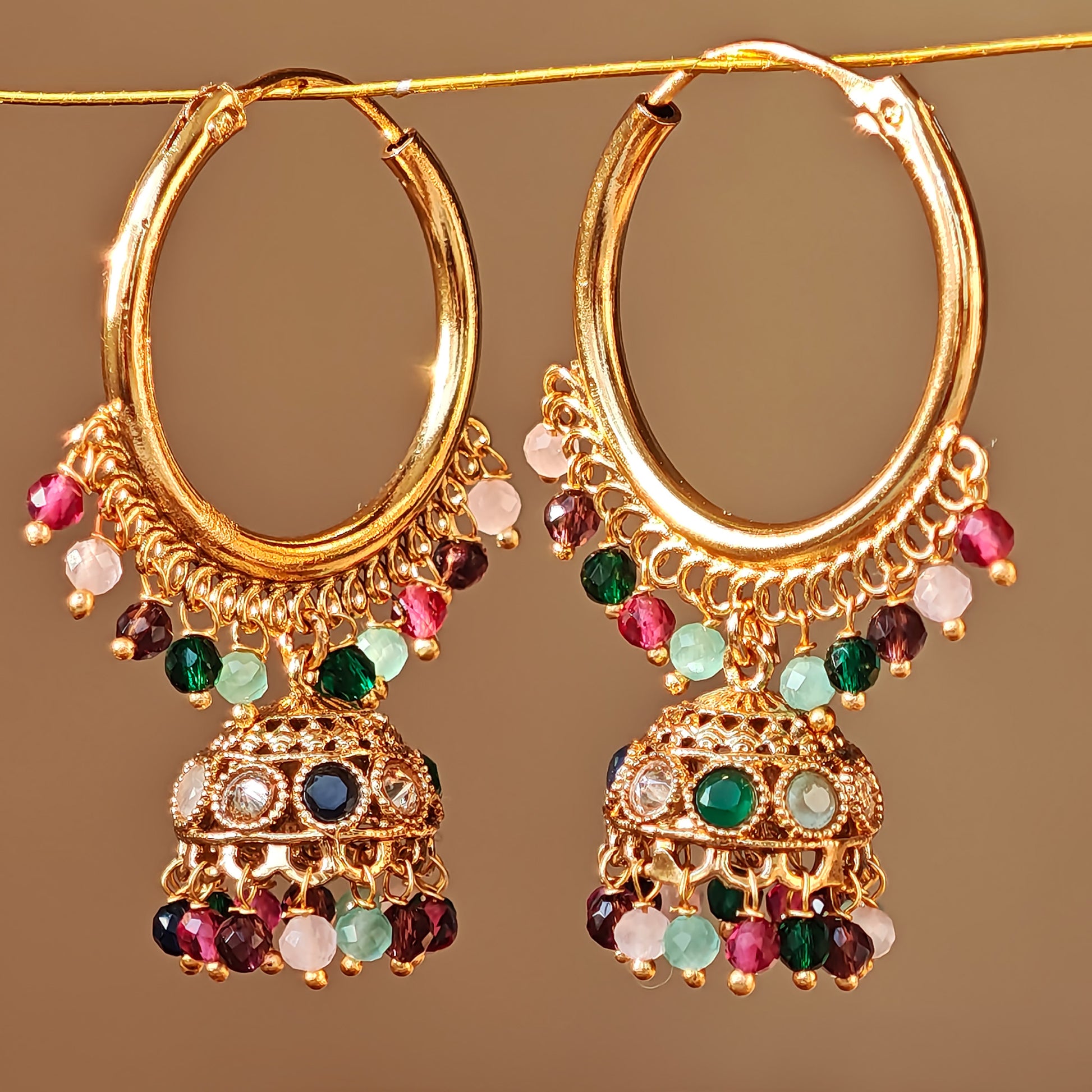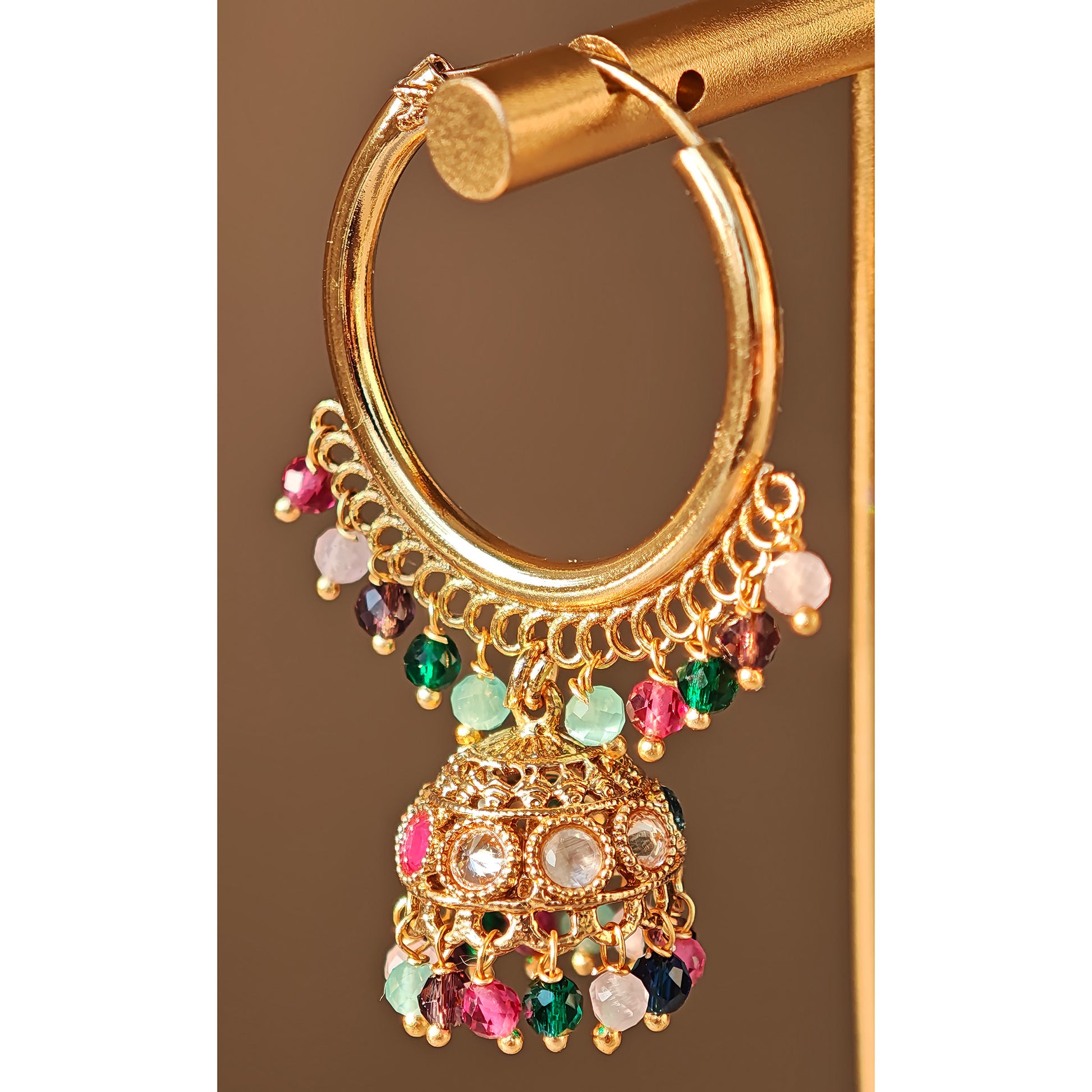 Beautiful Multicoloured Hoops Jhumki blends classic design with delicate pearls for a refined, timeless accessory.