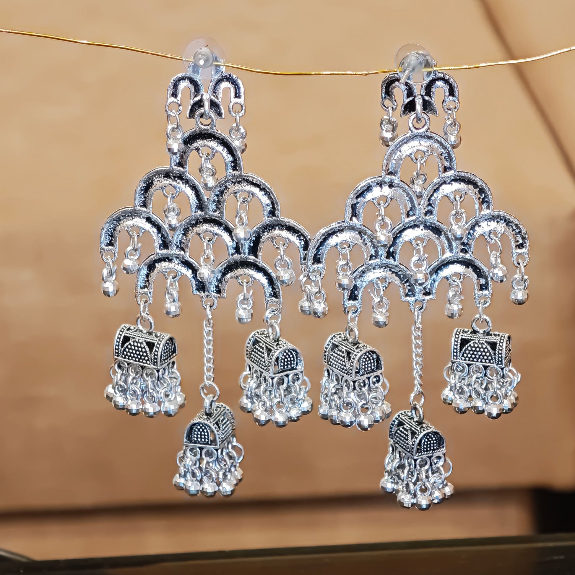 Oxidized Multi Layered Arch Jhumki - Statement earrings featuring stacked oxidized metal layers in an arched silhouette, delivering bold dimension and vintage-inspired elegance for those seeking distinctive traditional jewelry.