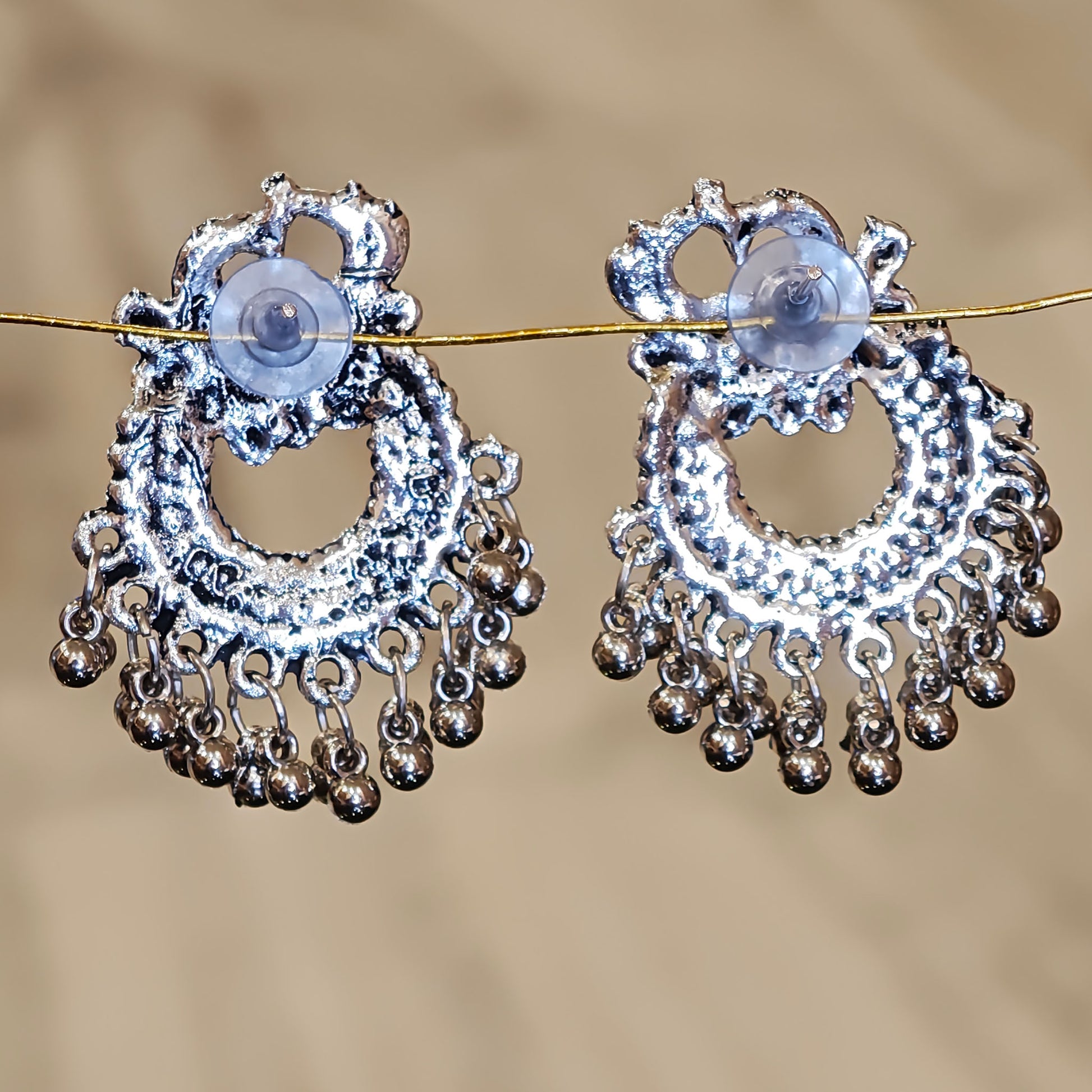 Oxidized Peacock Chandbali with Ghungroo Beads