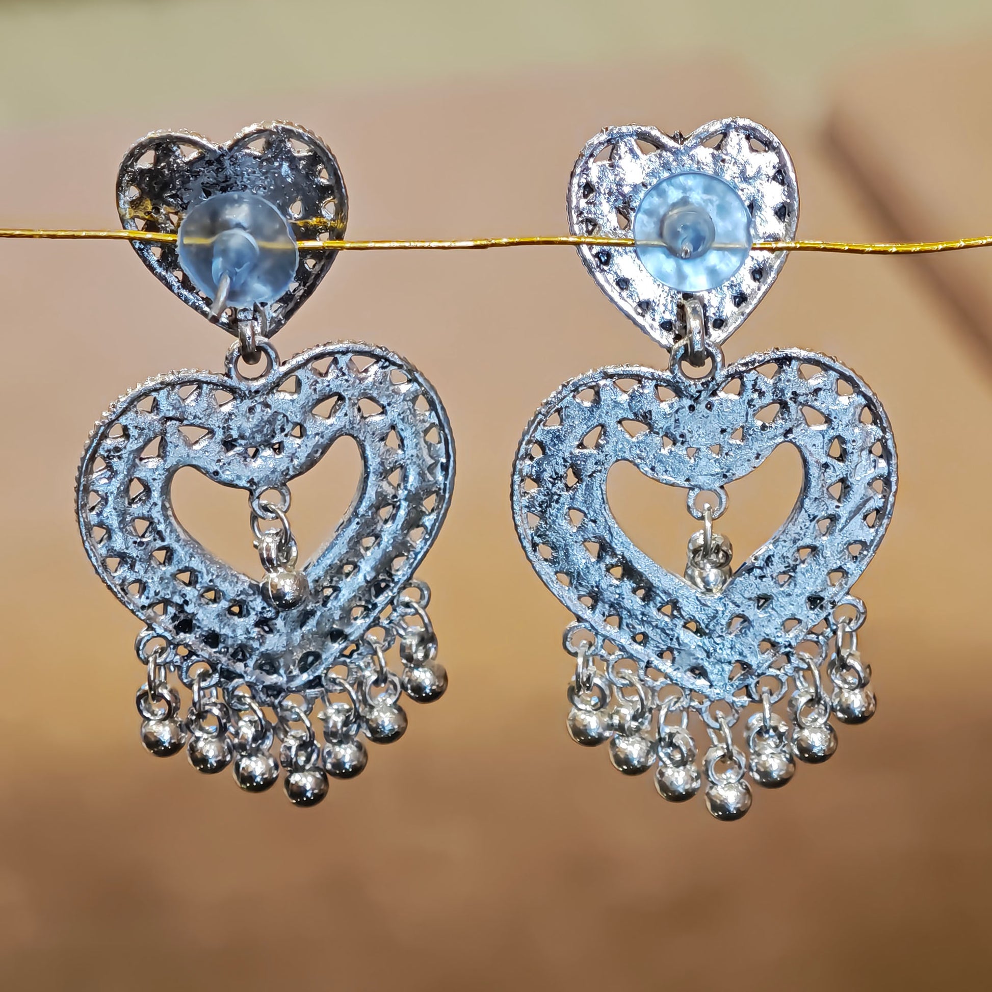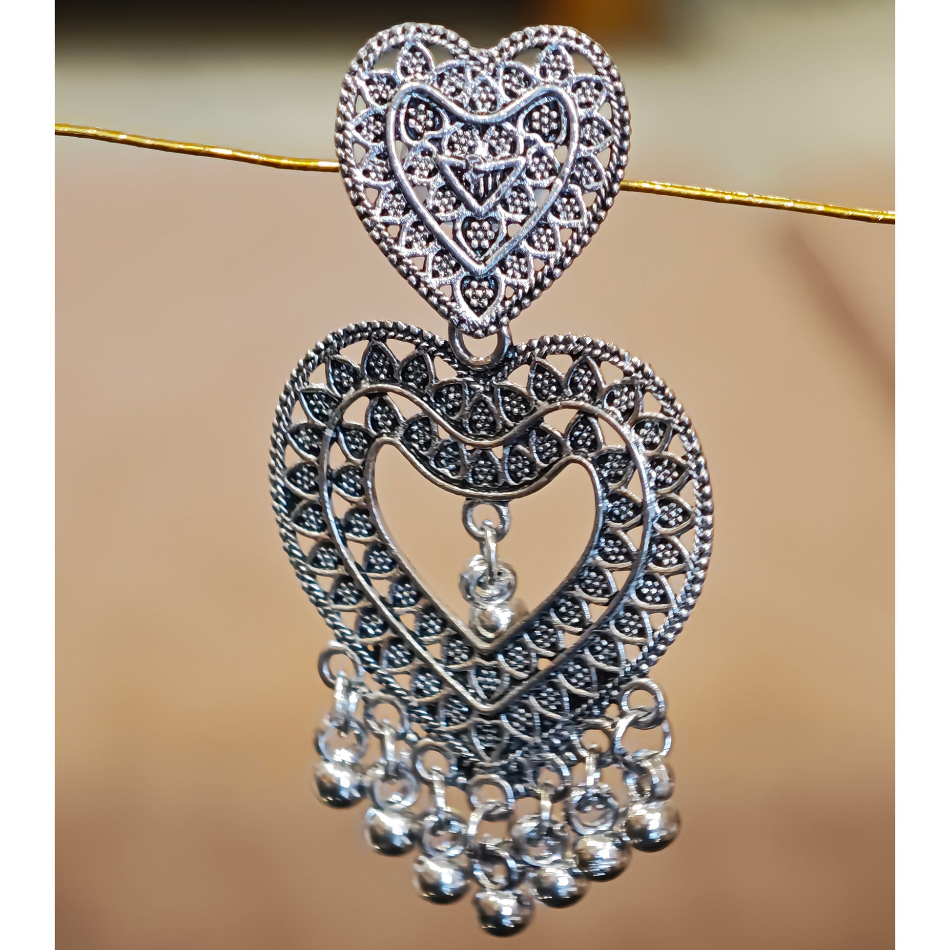 Oxidized Heart Shaped Dangler - Romantic drop earrings featuring a heart silhouette in oxidized metal, expertly designed to blend sentimental appeal with vintage aesthetics for those seeking meaningful traditional jewelry pieces.