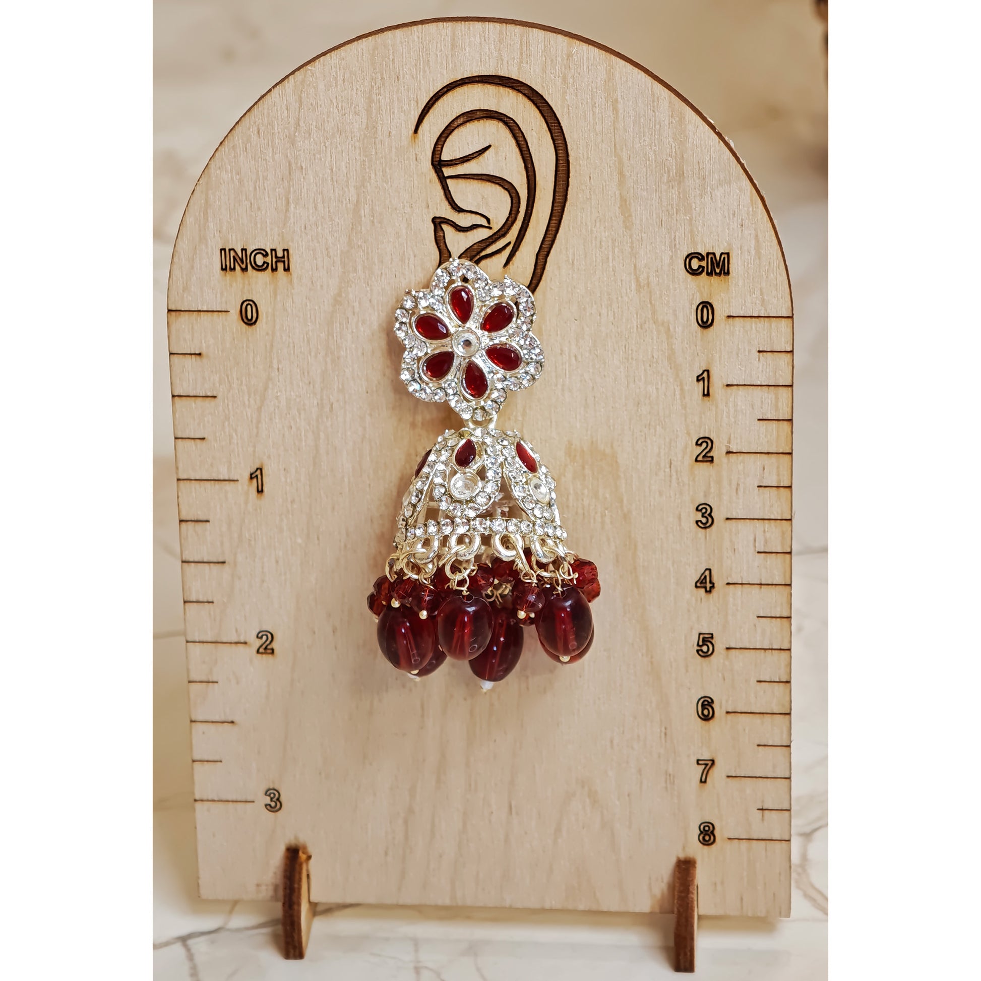 Red Floral Silver Toned Jhumki