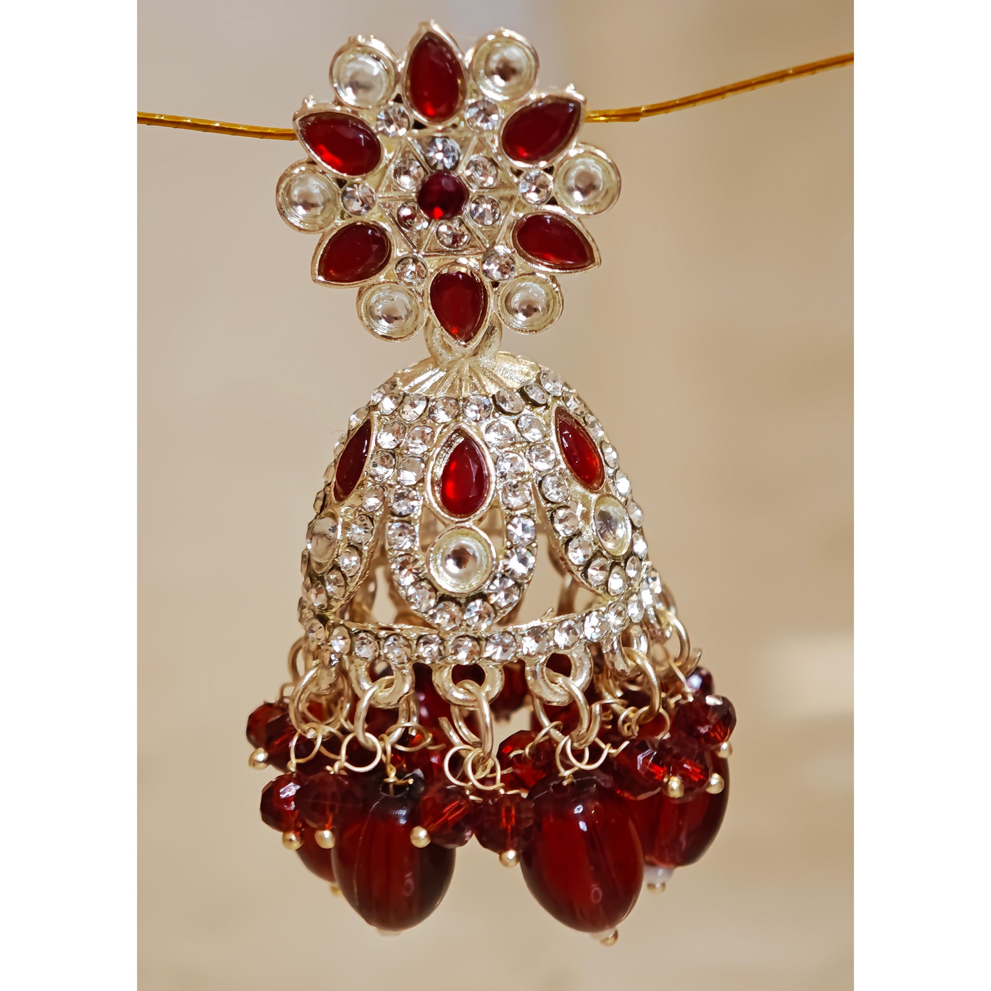 Radiant Red Floral Jhumkis with silver-tone jaali detailing that showcases intricate openwork design and timeless traditional Indian jewelry craftsmanship.