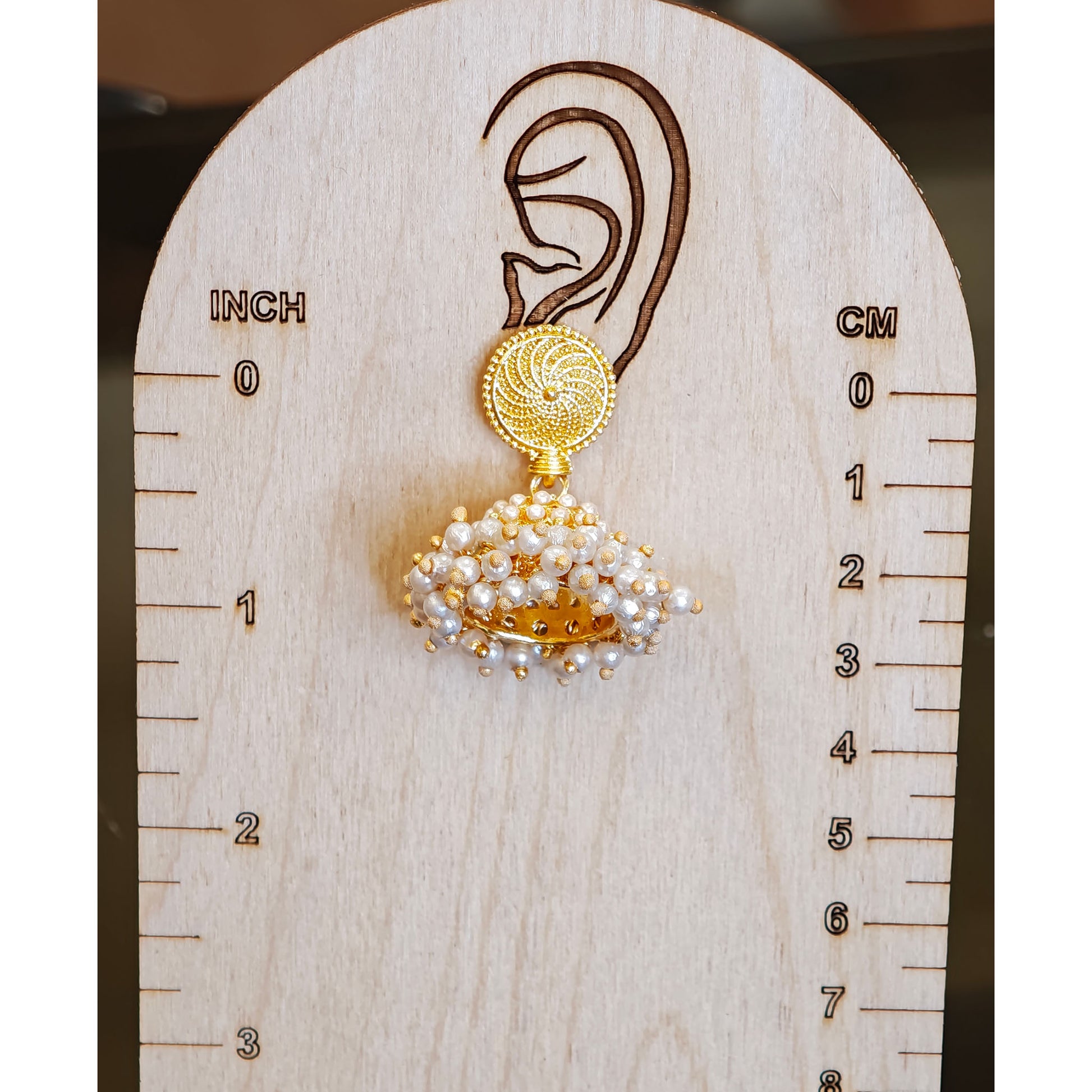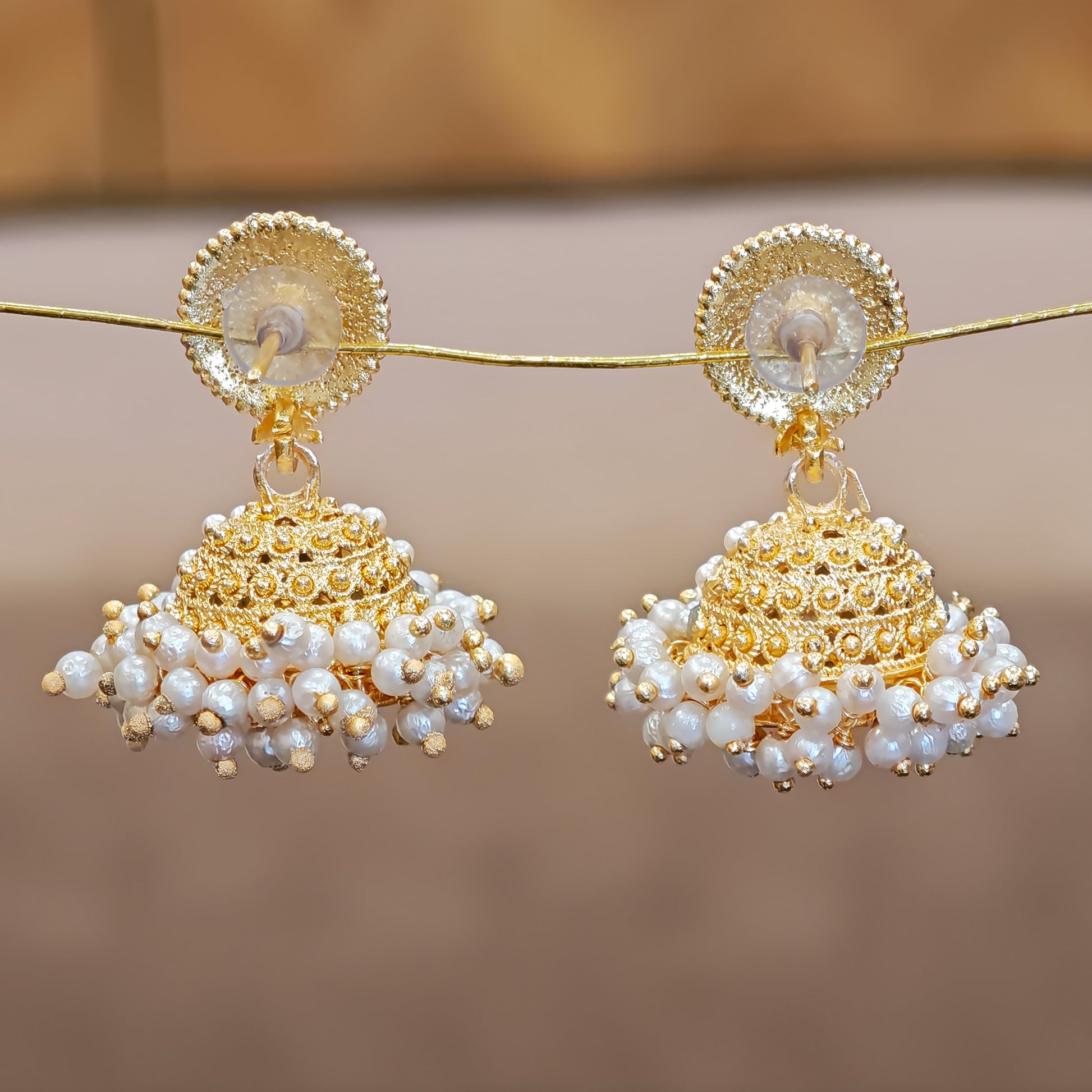 Magnificent Round Top Golden cluster Jhumkis showcasing richly detailed metalwork with clustered embellishments, presenting a luxurious accessory that captures light beautifully and elevates any traditional or contemporary ensemble.