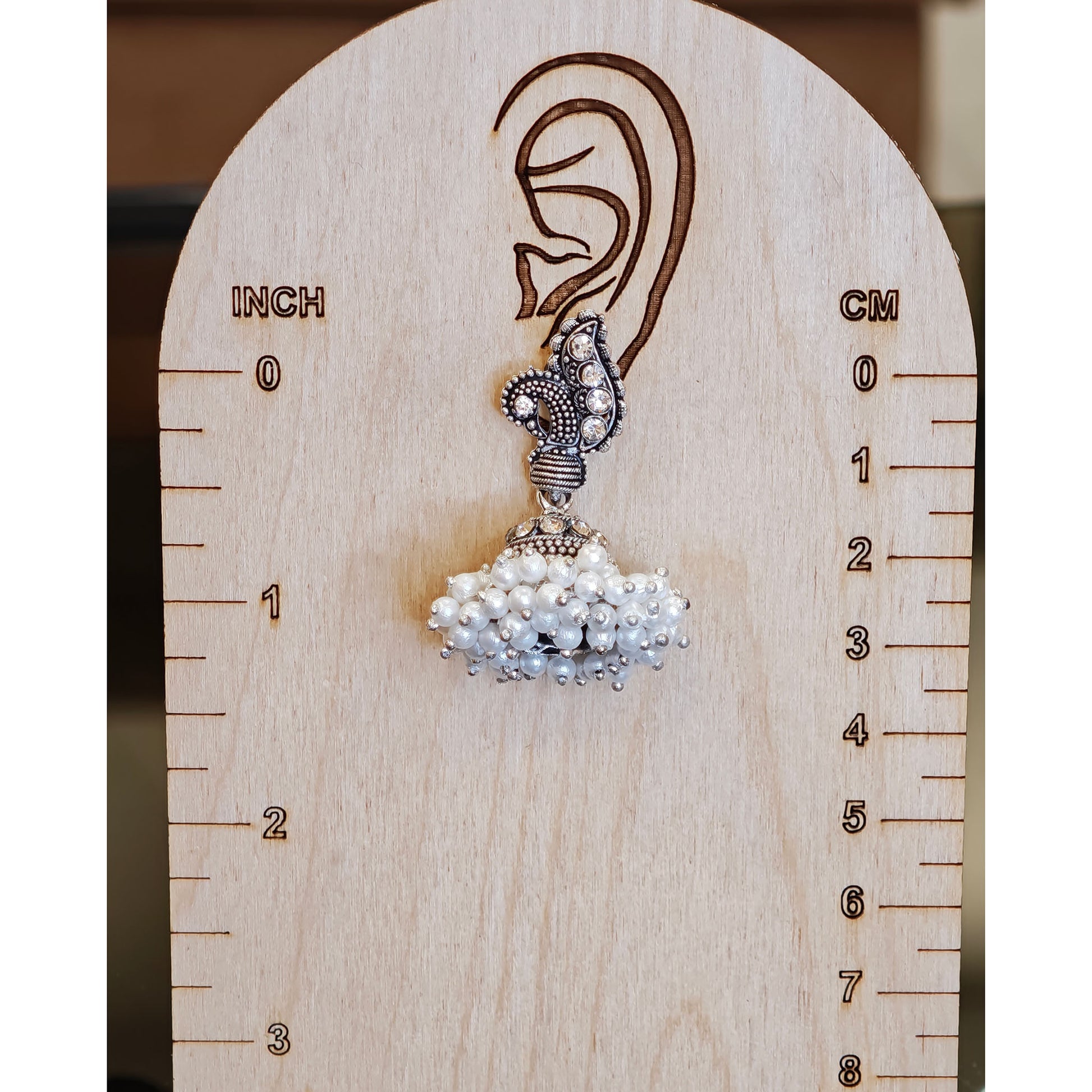 Silver Oxidized Peacock Pearl Cluster Jhumki
