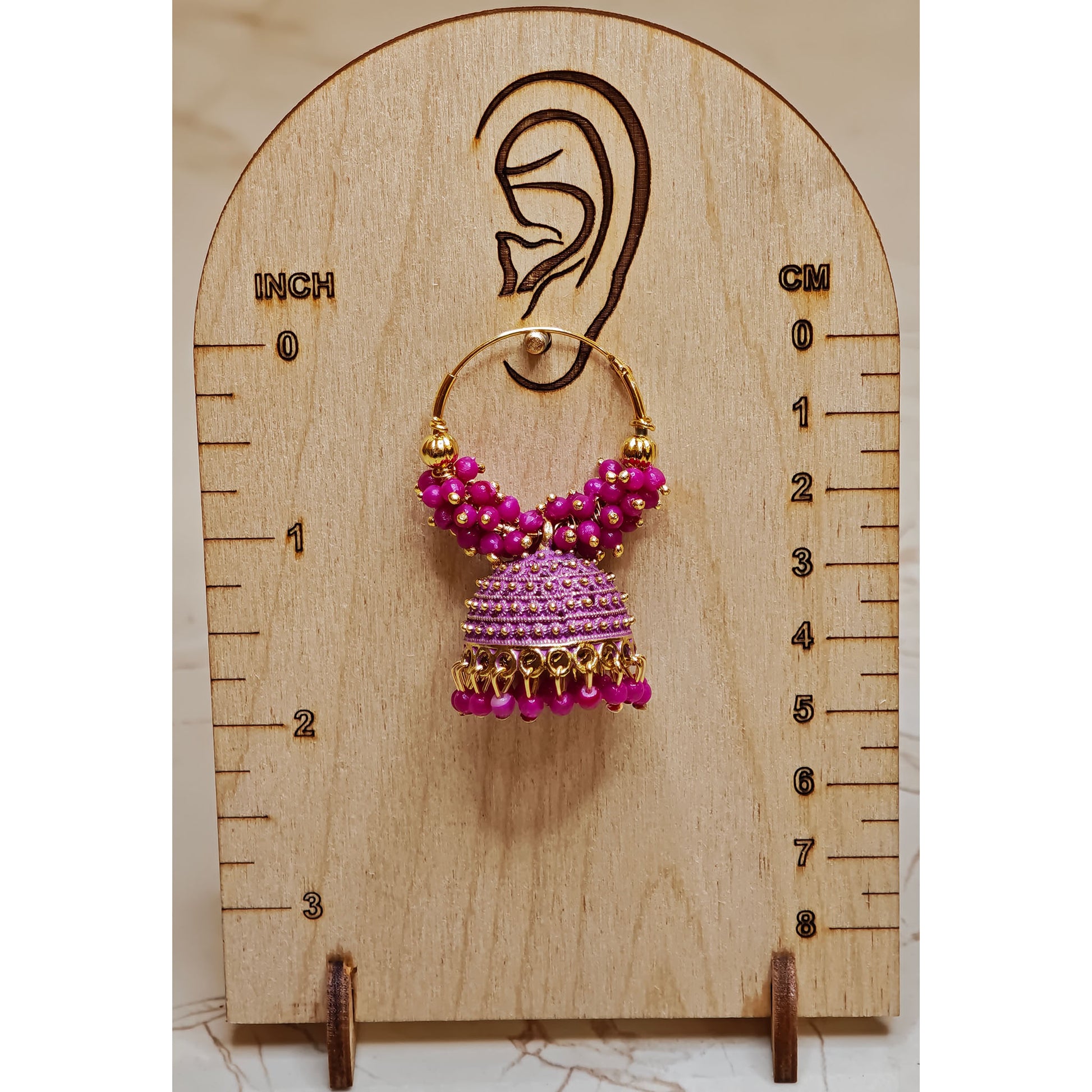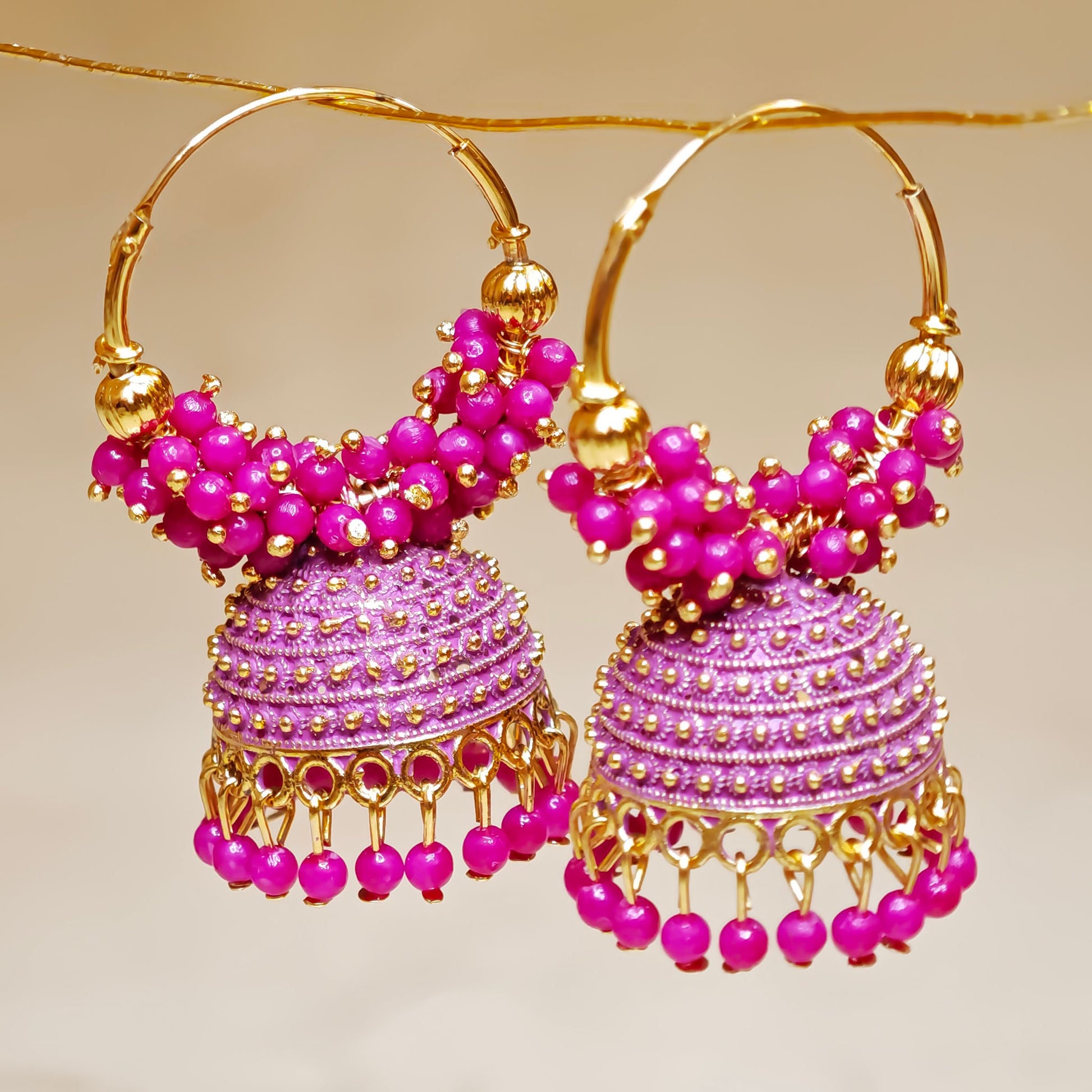Elegant Rani Pink Hoop Jhumki in medium size, featuring traditional curved design with vibrant color that complements both casual and festive wear.