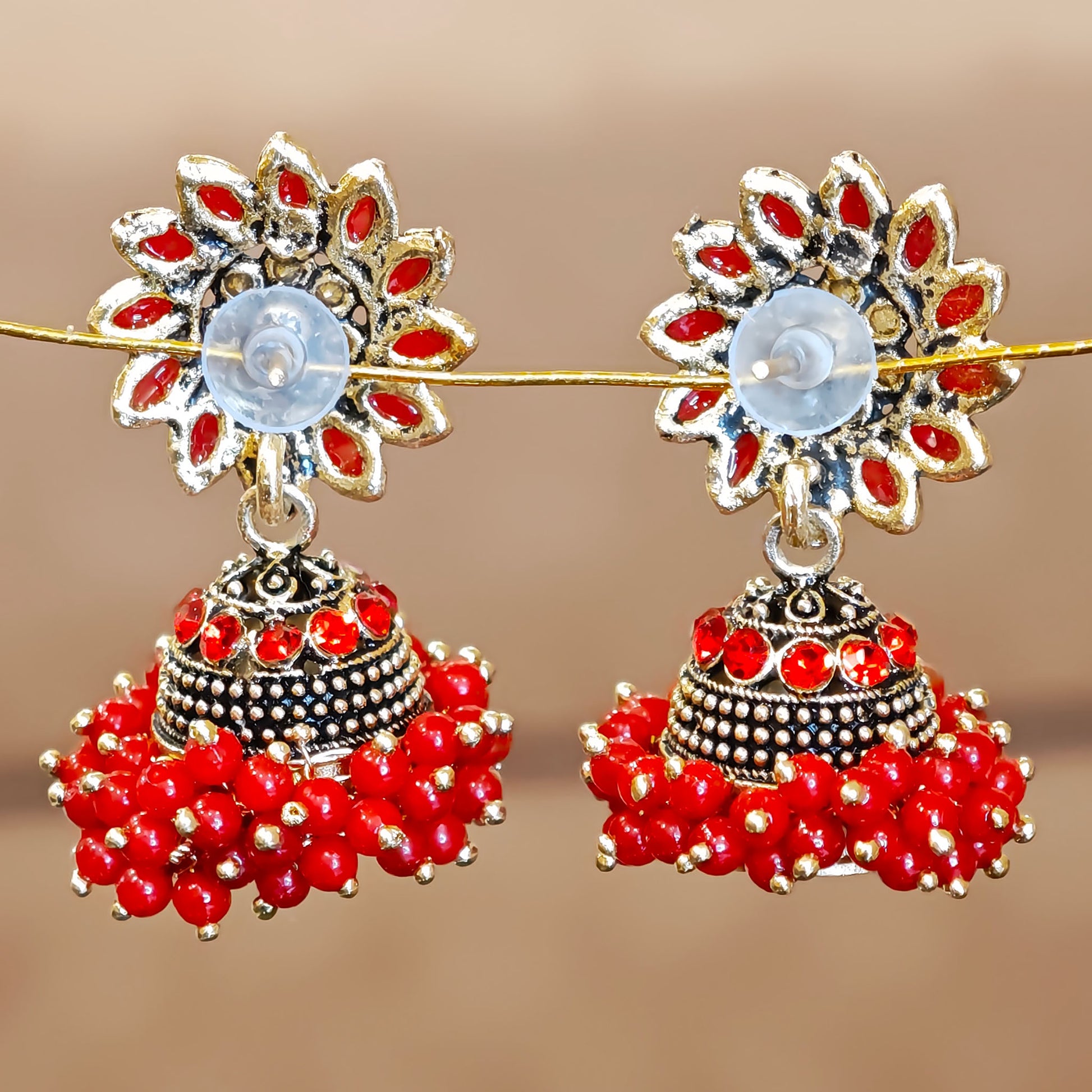Red Floral Cluster Jhumki