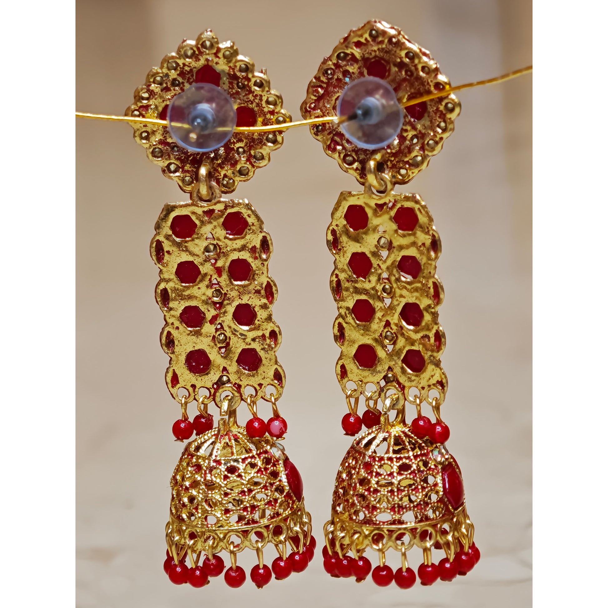 Red Long Stone Jhumki
