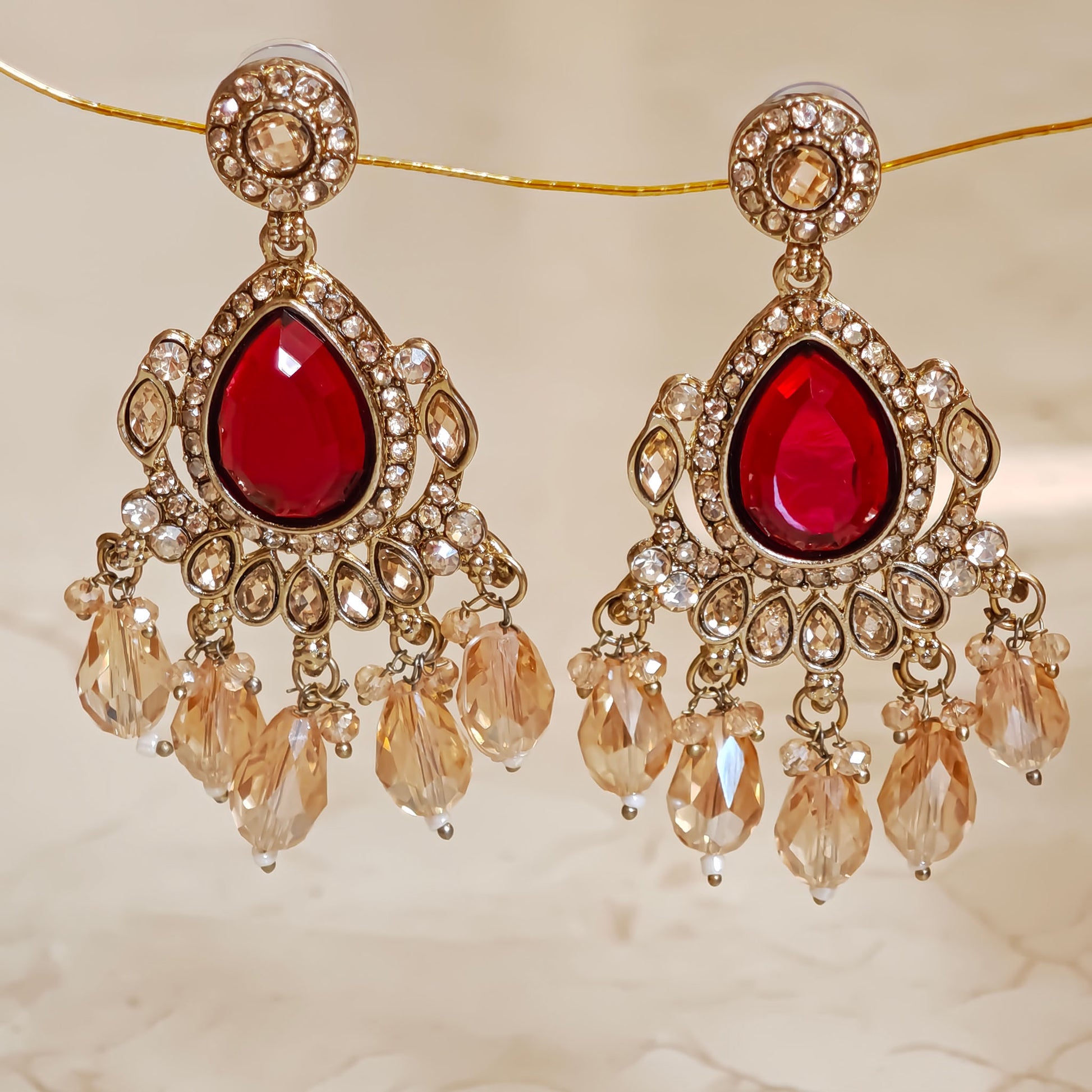 Red Kundan Leaf Shaped Dangler
